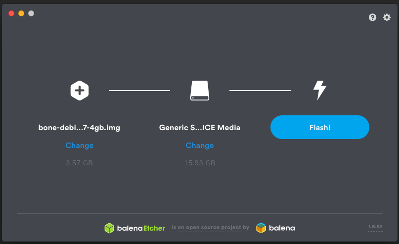 If using BeagleBone Black, BeagleBone Blue, BeagleBone AI, BeagleBone AI-64, BeaglePlay or other board with on-board eMMC flash and you desire to write the image to your on-board eMMC, you’ll need to follow the instructions at http://elinux.org/Beagleboard:BeagleBoneBlack_Debian#Flashing_eMMC. During flash all 4 USRx LEDs will show sequential chaser pattern. When the flashing is complete, all 4 USRx LEDs will be steady off and possibly power down the board upon completion. This can take up to 45 minutes. Power-down your board, remove the SD card and apply power again to finish.